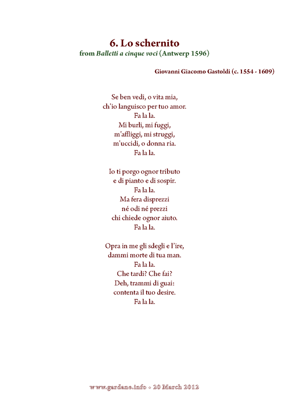 First Publication. 1591 in Balletti a cinque voci (No.6)