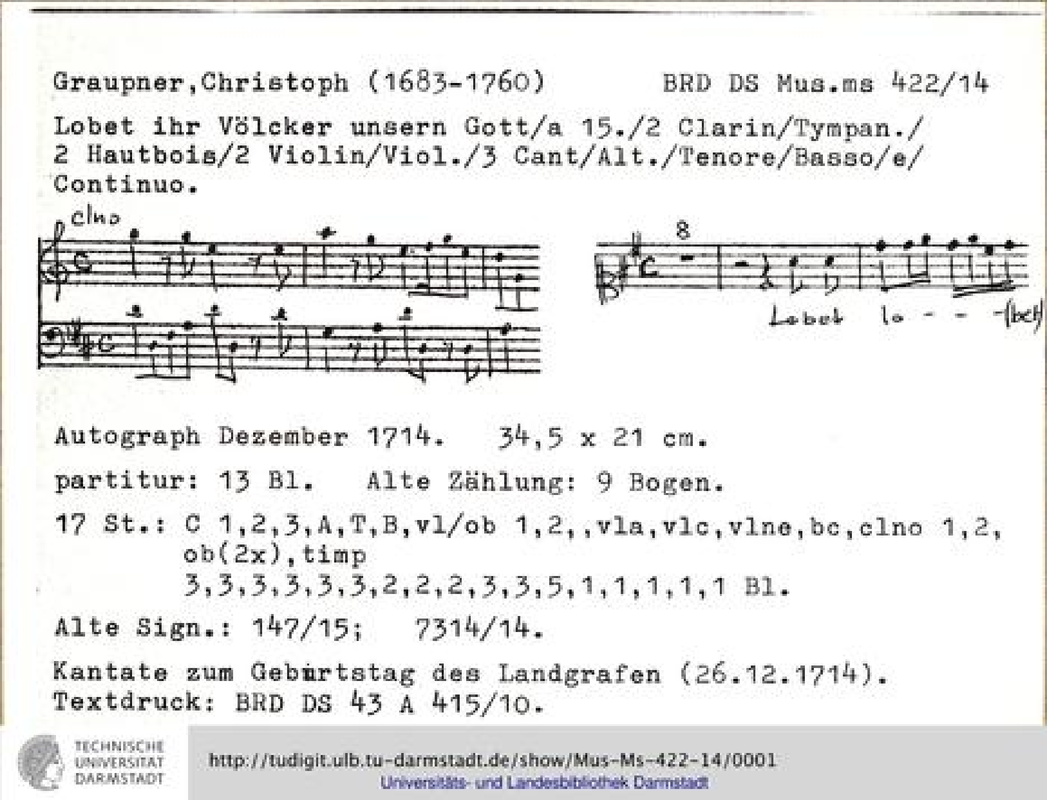 | Opus/Catalogue NumberOp./Cat. No. | GWV 1174/14 |