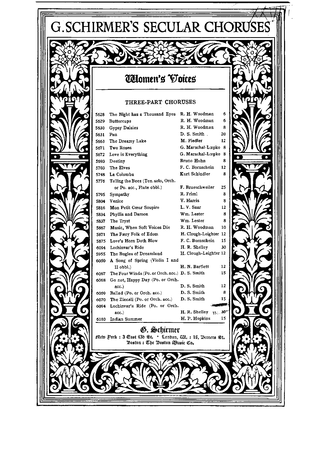 | First Publication. | 1915 – New York: Schirmer |