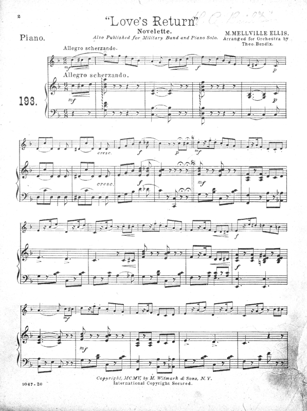 Title page say "Also published for Military Band and Piano Solo" but it is unclear whether those are also arrangements by Bendix.