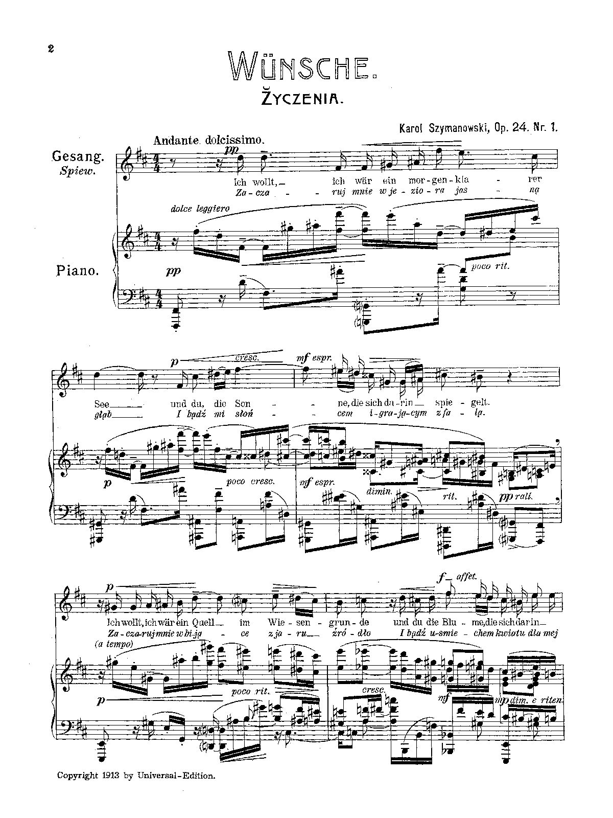 - Słopiewnie, Op.46-bis (1921), arr. voice and orch. (1928)