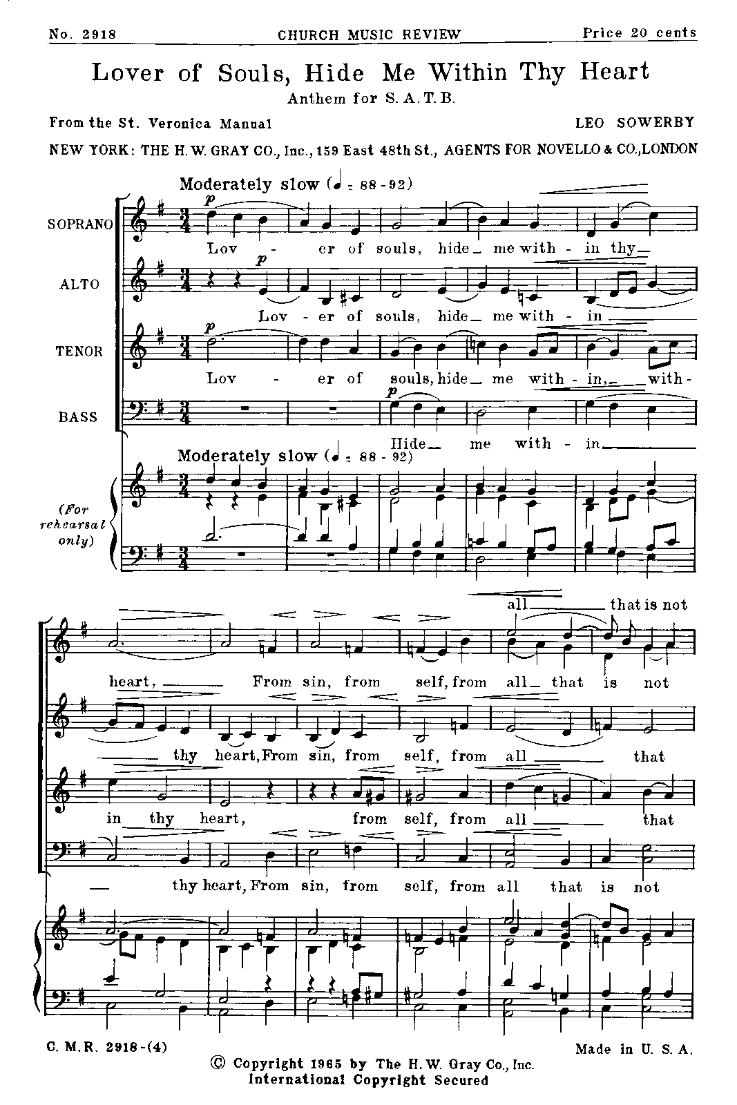 | Work Title | Lover of Souls, Hide Me Within Thy Heart |