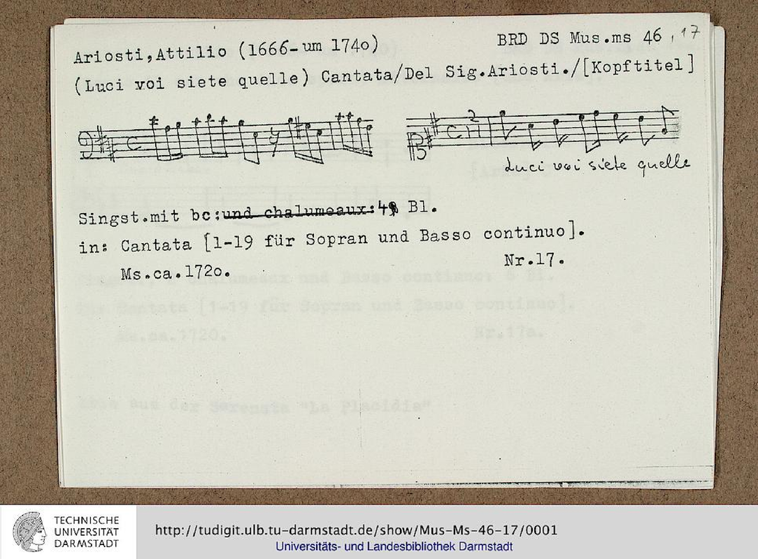 | Alternative. Title | Cantata per soprano e basso continuo |