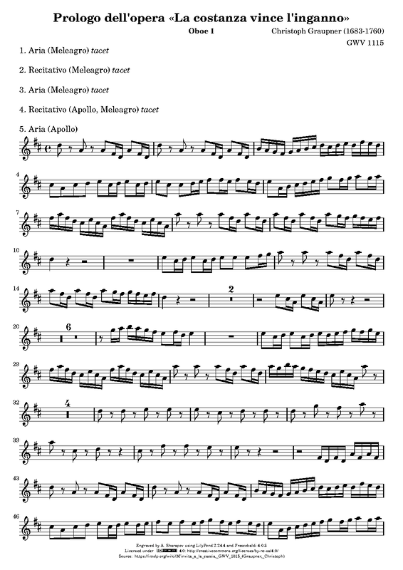 ⇒ 10 more: Oboe 2 • Horn 1 (F) • Horn 2 (F) • Horn 3 (F) • Horn 4 (F) • Violins I • Violins II • Violas • Cellos • Continuo (Bassoon)