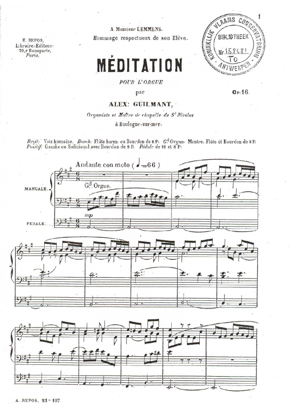 | Extra Information | In later years Guilmant changed the opus number of this work and published it as No.1 of Op.20 (Pièces dans différents styles, 6e Livraison). |