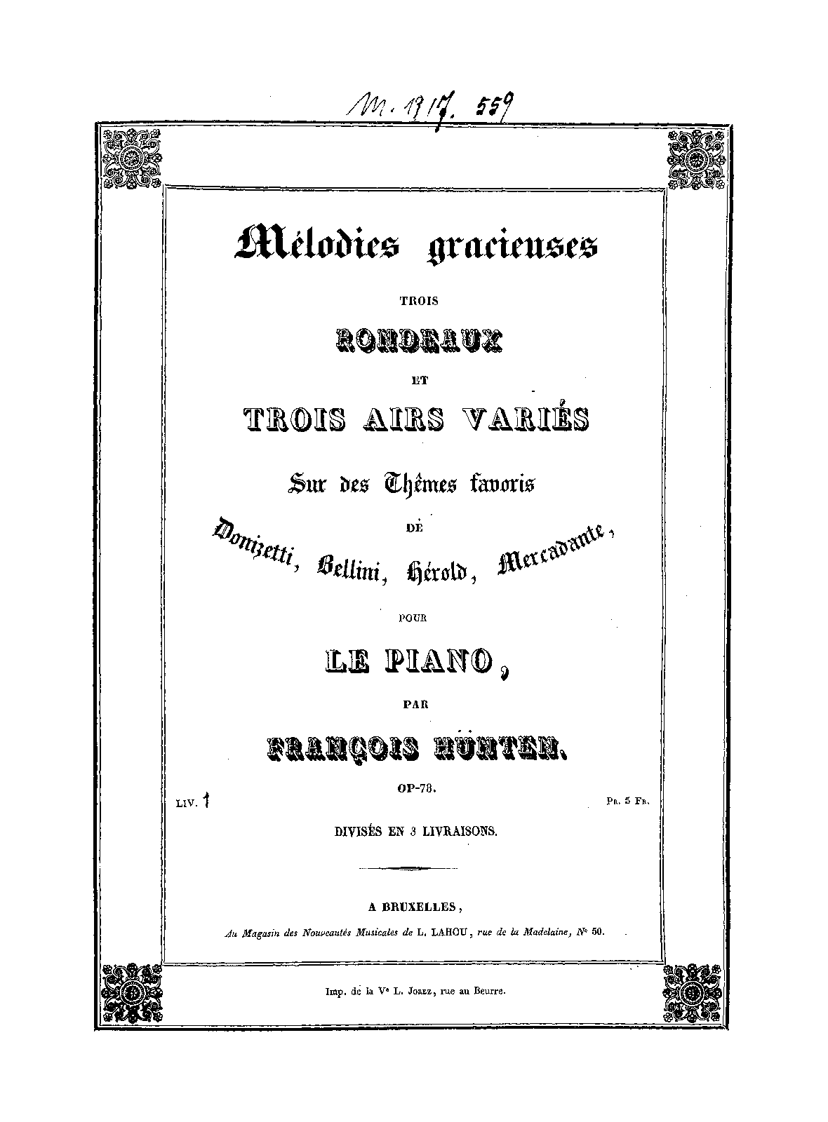 Mélodies gracieuses, Op.78 (Hünten, François)