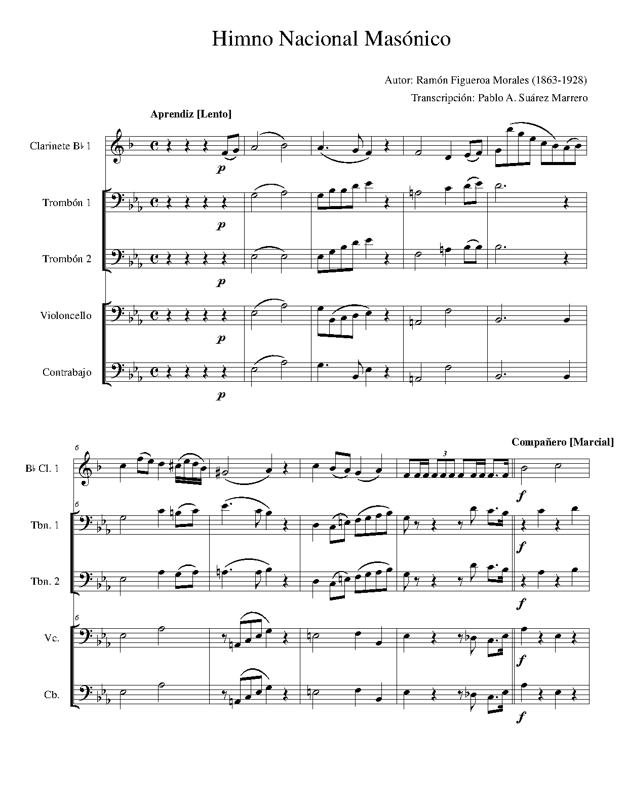 Los movimientos corresponden a distintas partes de la liturgia masónica. El Himno Nacional Masónico era utilizado para la apertura o clausura de la logia. Las tres secciones de la obra Para Iniciación se corresponden con cada uno de los viajes realizados durante la primera parte del rito, y El Juramento se emplea en el momento homónimo dentro de la liturgia. En las partes instrumentales de la pieza Acacia se refrenda que fue utilizada para la exaltación del 3er grado, es decir, del grado de maestro masón, único de su tipo que necesitaría de una marcha fúnebre que apoye sonoramente la muerte simbólica del Compañero para renacer como Maestro de la doctrina masónica.