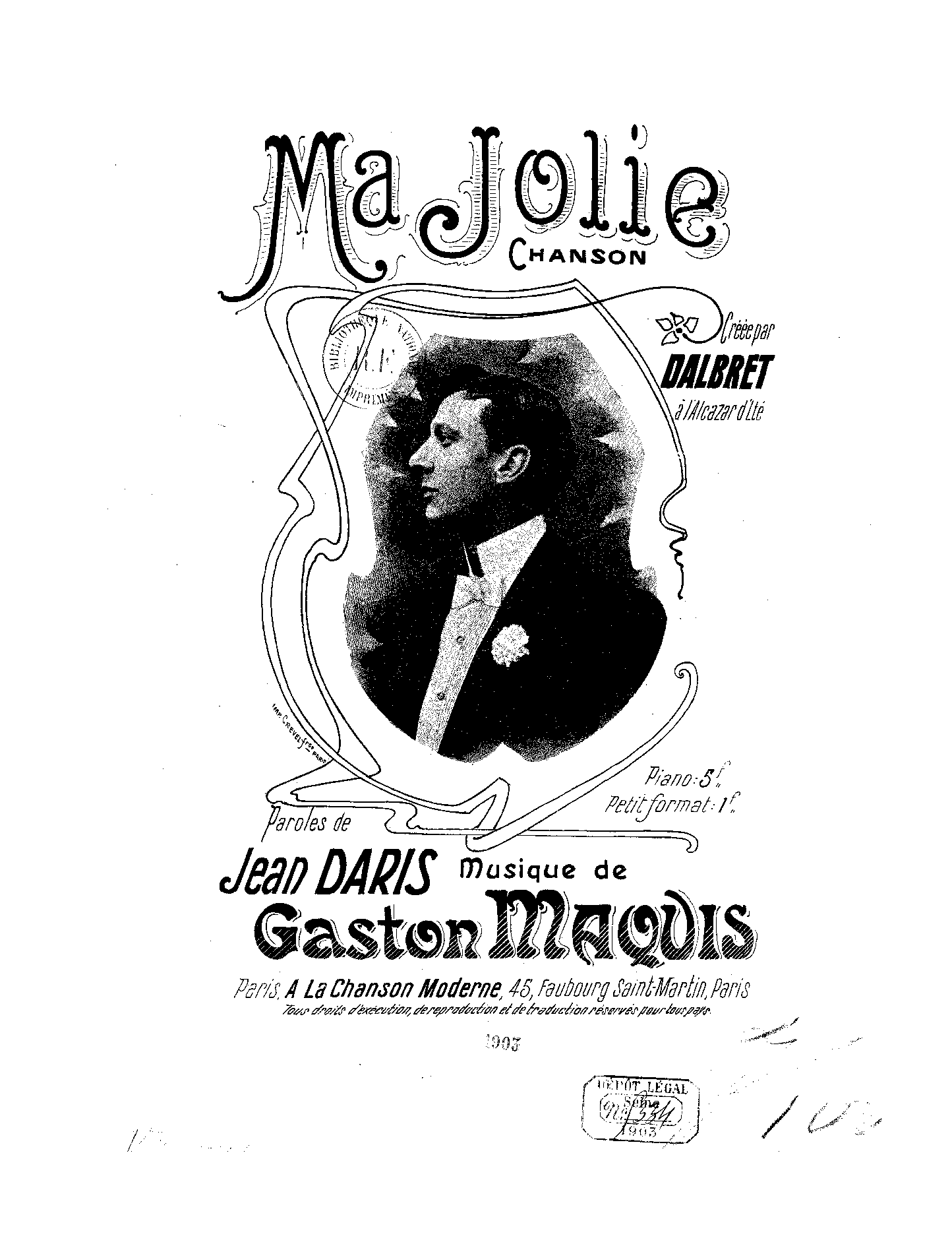 | Copyright Information | Publication noted in the Bibliographie de la France : 92e année, 2e série, Nº 38, 19 Septembre 1903, p.638, reg.5185 (vocal score). |