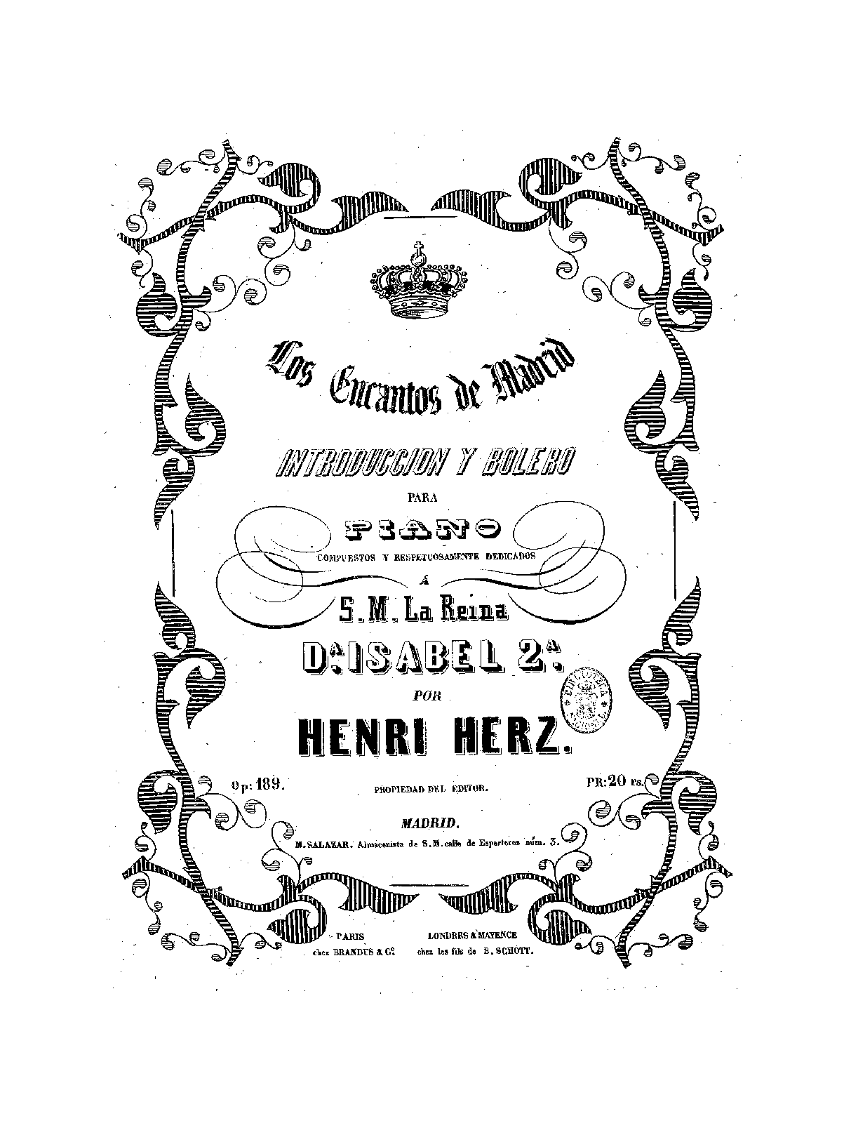 | Dedication | compuesto y respetuosamente dedicados a S.M. la Reina Dª Isabel 2ª (1830–1904) |