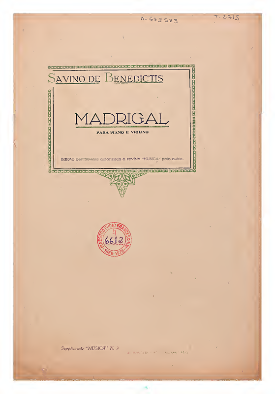 | Genre Categories | Madrigals; Pieces; For violin, piano; |