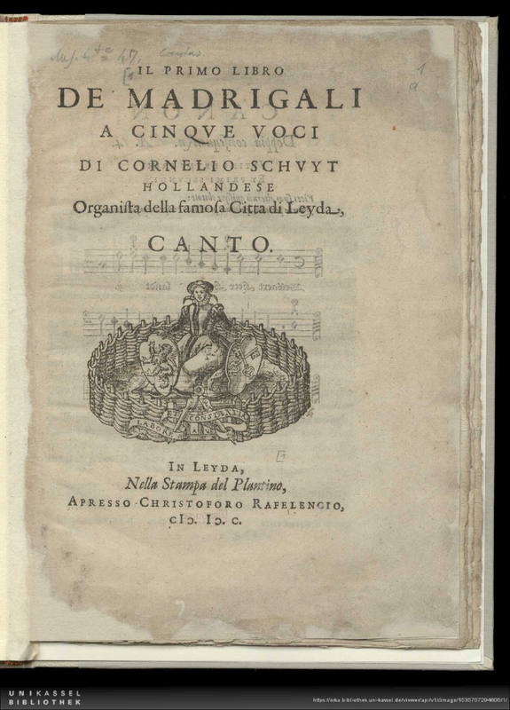| Alternative. Title | Il primo libro de madrigali a cinqve voci di Cornelio Schvyt Hollandese Organista della famosa Citta di Leyda |