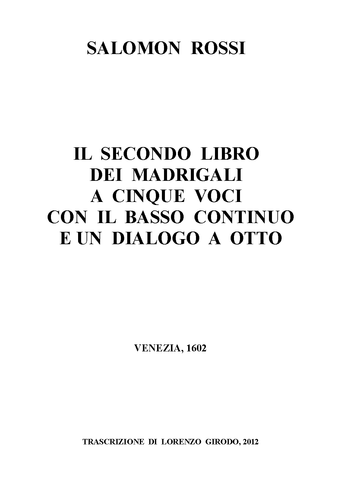 | Work Title | Il Secondo Libro de Madrigali a cinque voci |
