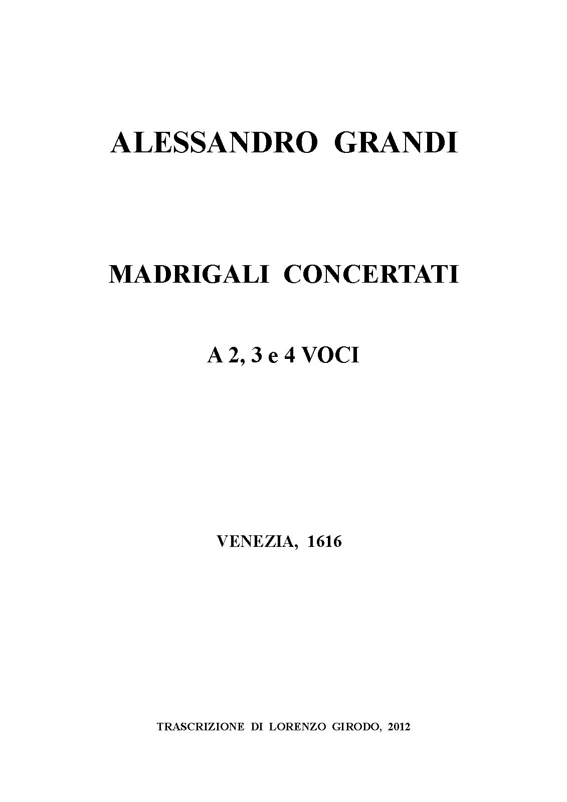 | Genre Categories | Madrigals; For 2 voices, continuo; For voices with continuo; |