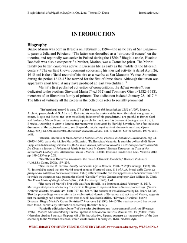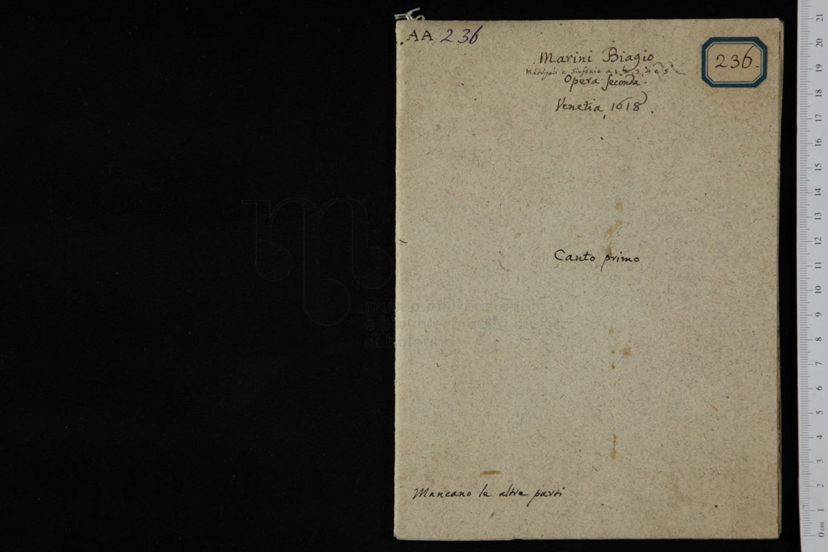 • There is no known Continuo part book surviving complete; only Canto 1, Canto 2 and Basso (voice) survive in different libraries.