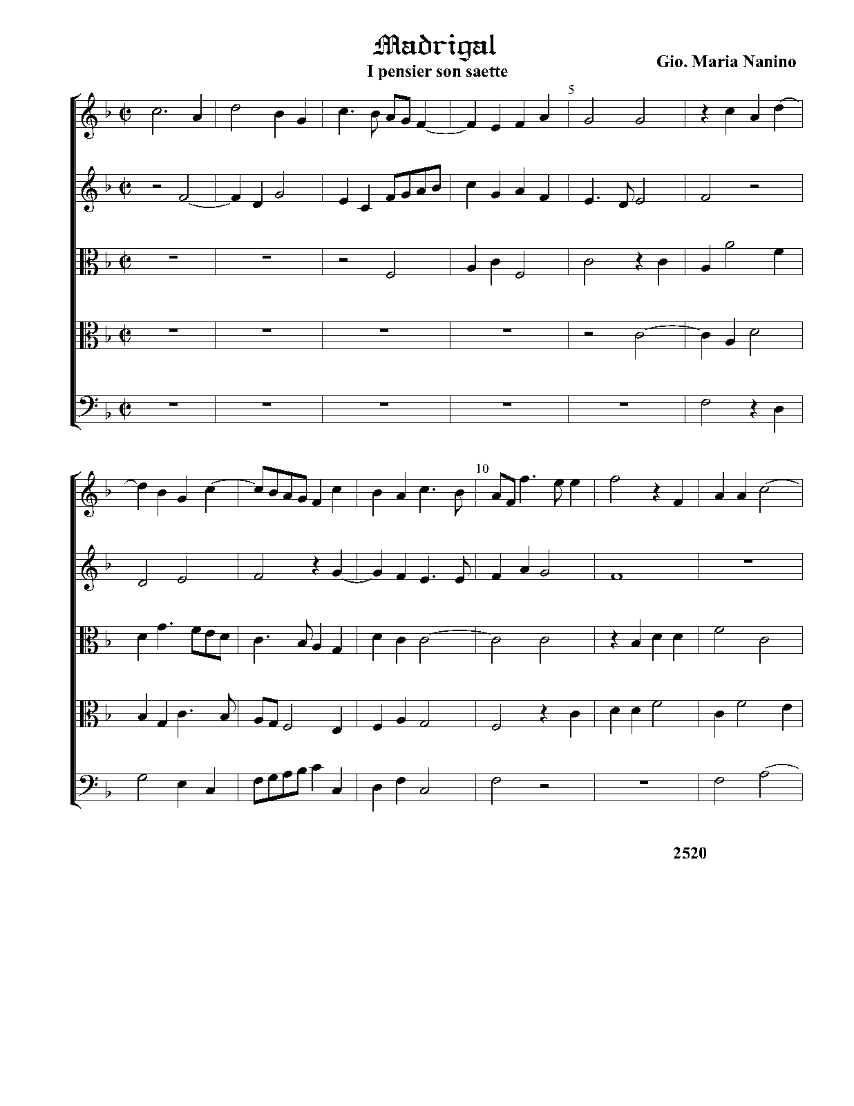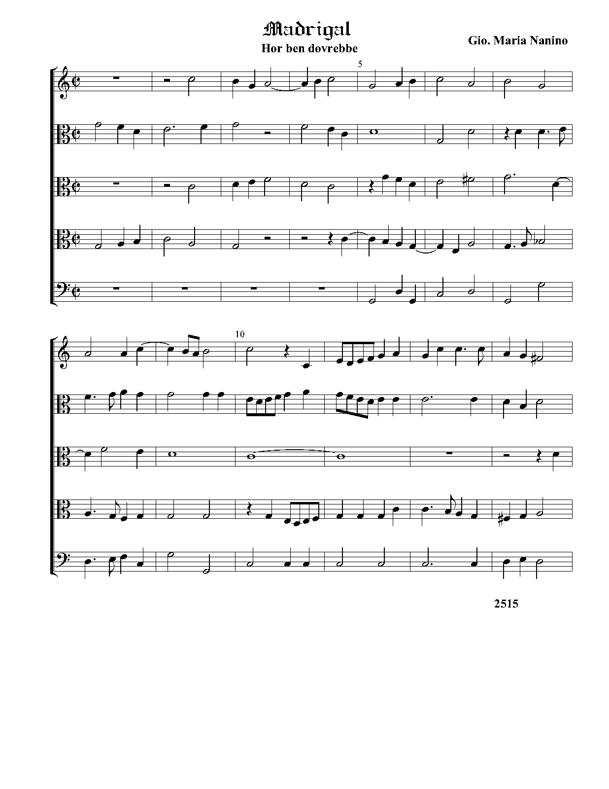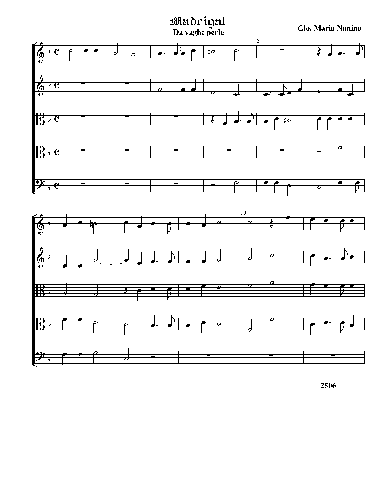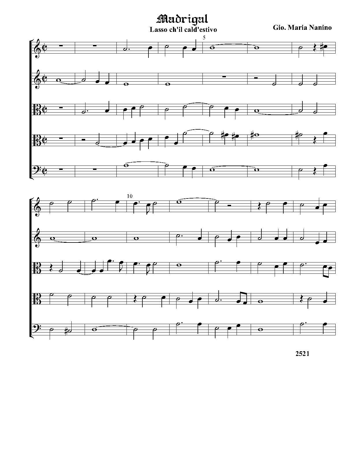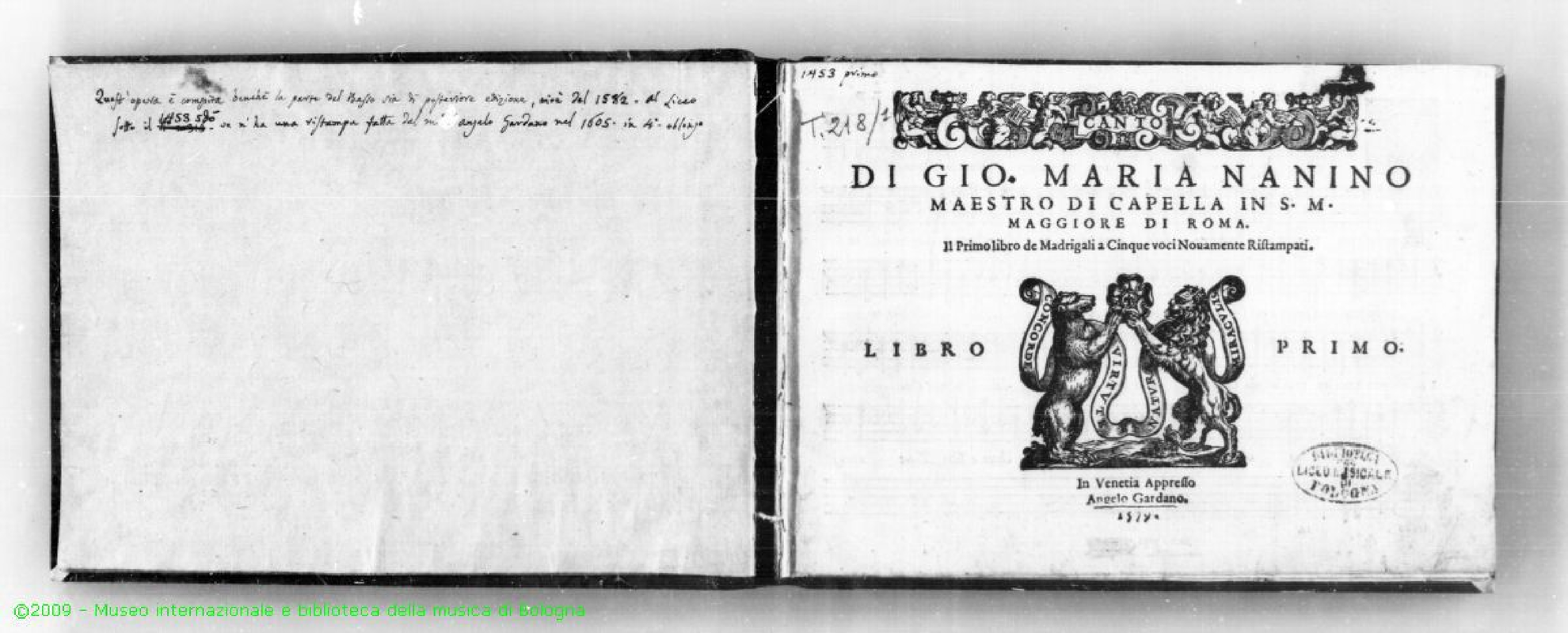 | Alternative. Title | Di Gio. Maria Nanino Maestro di Capella in S. M. Maggiore di Roma. Il Primo libro de Madrigali a Cinque voci Nouamente Ristampati. In Venetia Appresso Angelo Gardano. 1579. |