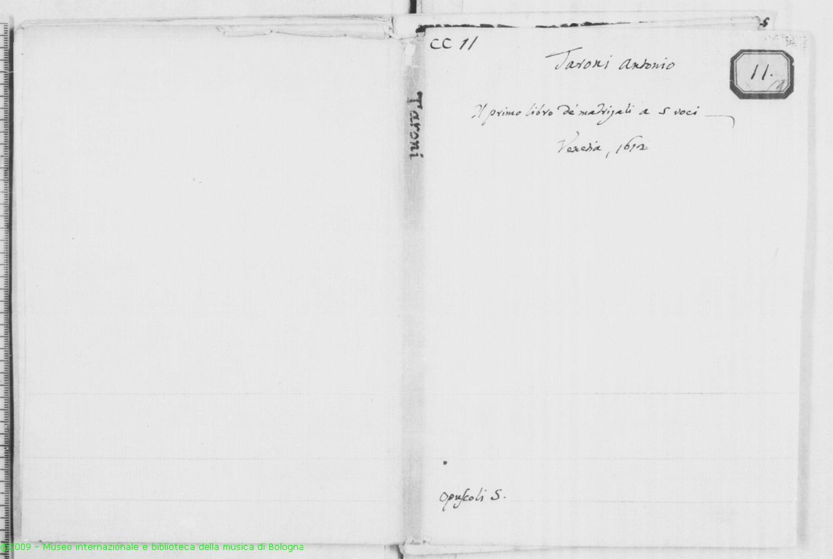 | Alternative. Title | Il Primo Libro de Madrigali a cinque voci, Con due à otto nel fine. Di Antonio Taroni Mantovano Nouamente con diligentia ristampati. In Venetia Appresso Ricciardo Amadino. 1612. |