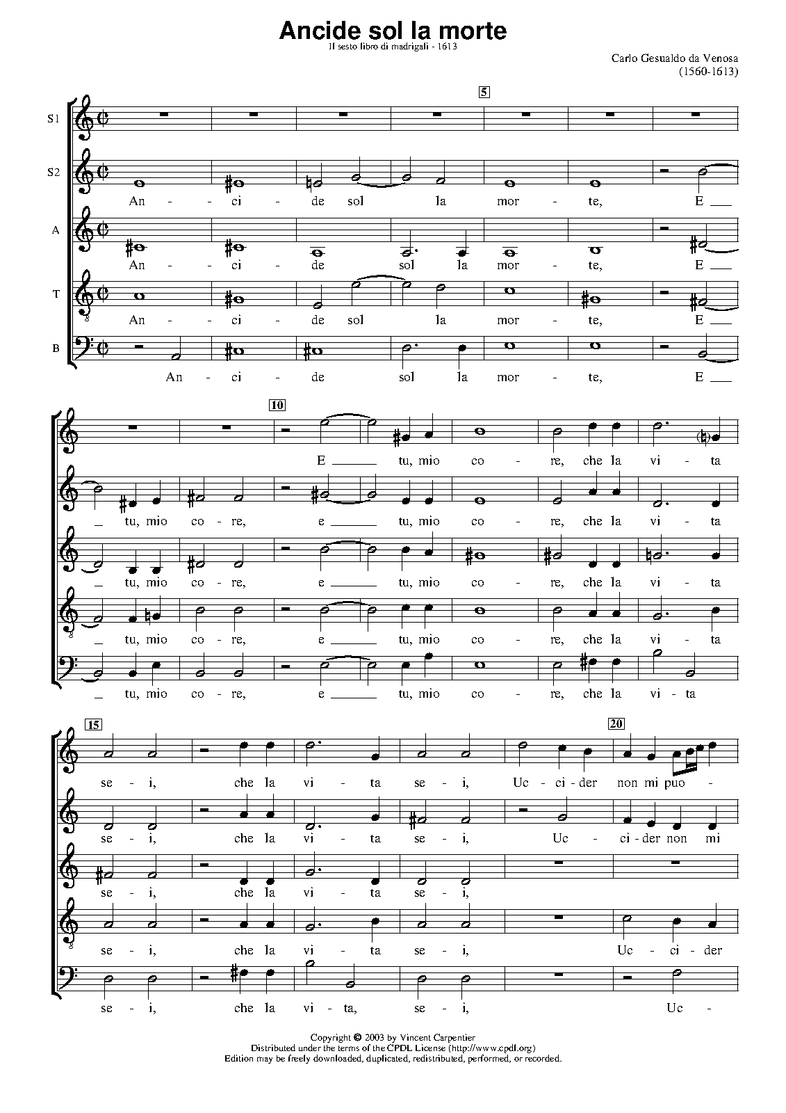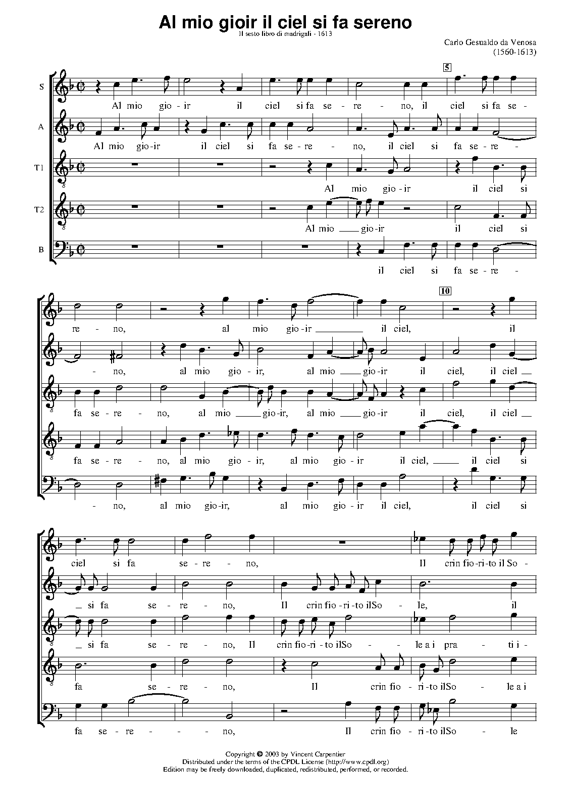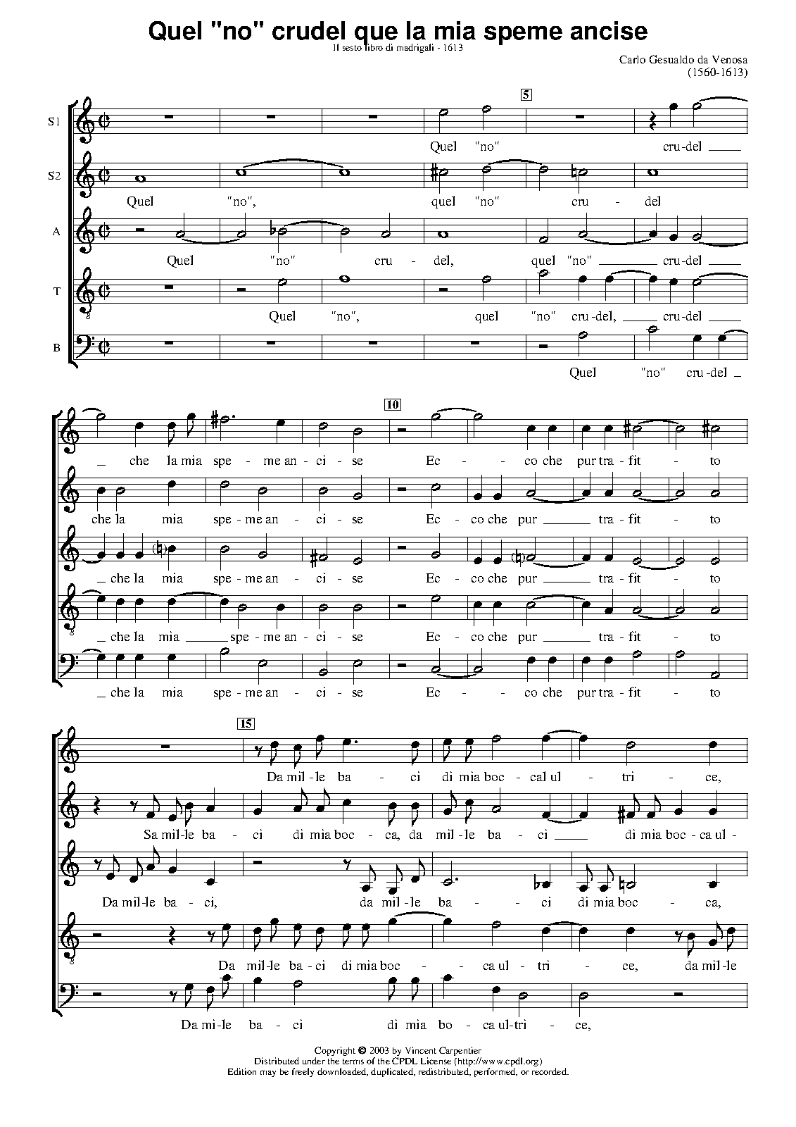 | First Publication | 1611 - Gesualdo: Appresso Gio. Jacomo Carlino |