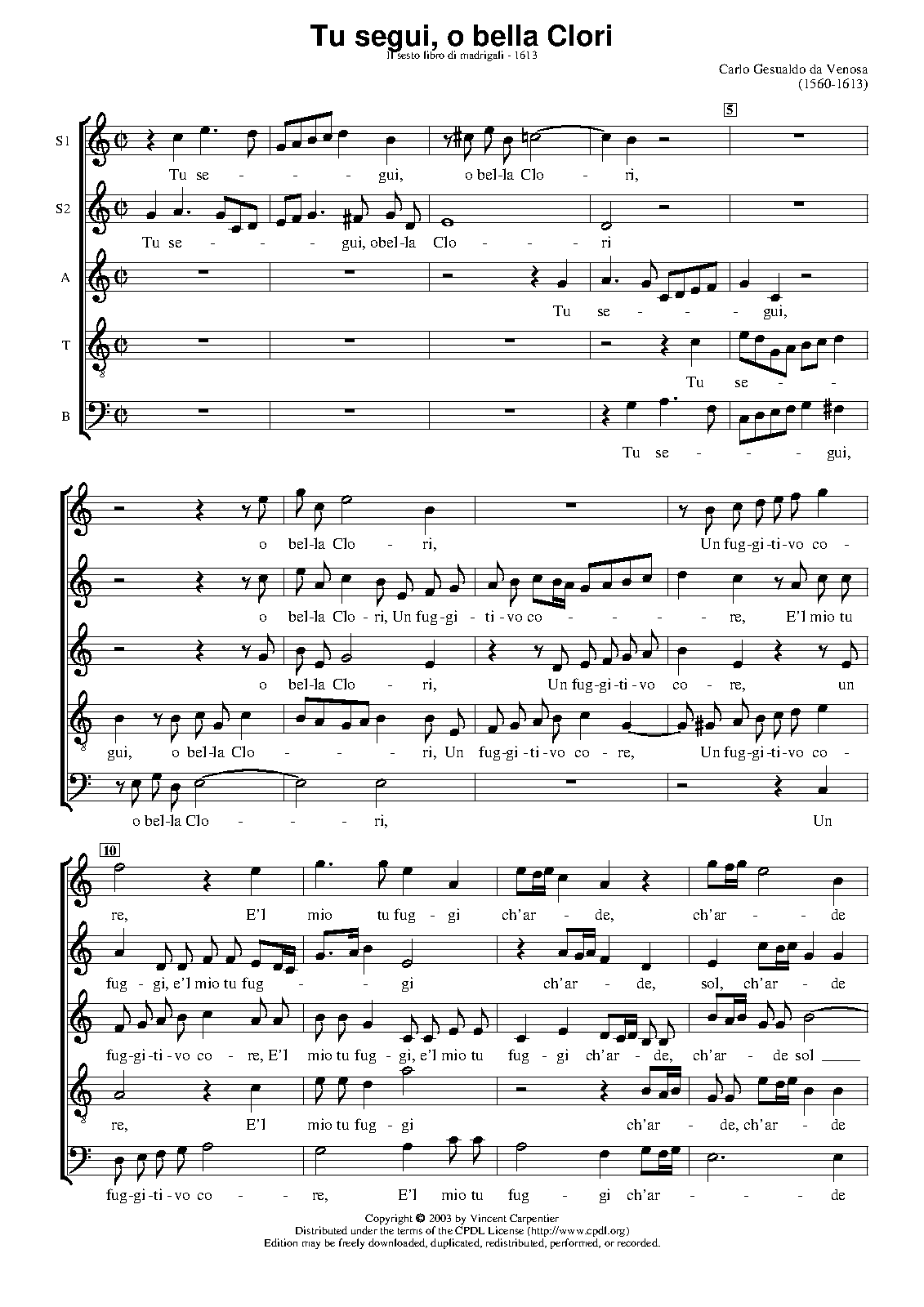 ⇒ 9 more: 2. Beltà poi che t'assenti • 3. Tu piangi, o filli mia • 4. Resta di darmi noia • 5. Chiaro risplender suole • 6. Io parto e non più dissi • 7. Mille volte il dí moro • 8. O dolce mio tesoro • 9. Deh, come invan sospiro • 10. Io pur respiro in così gran dolore
