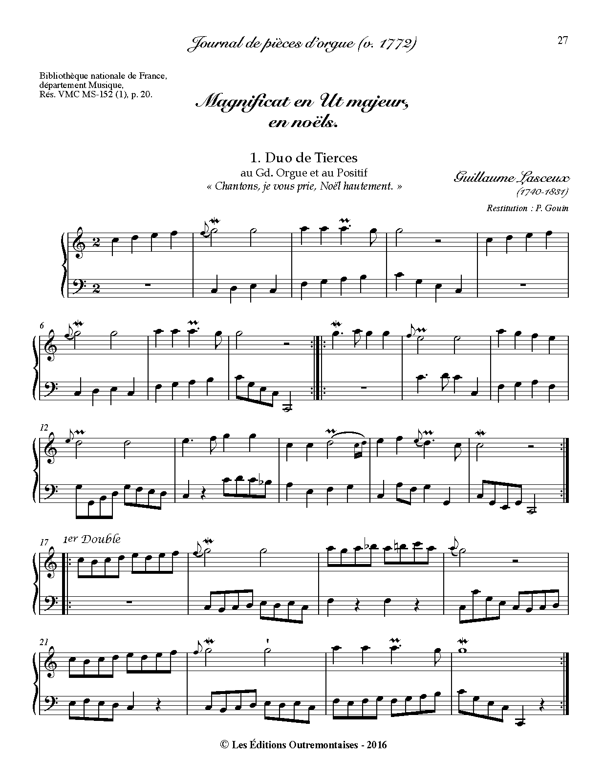 | First Publication | 1772 (?) from Journal de Pièces d'orgue |