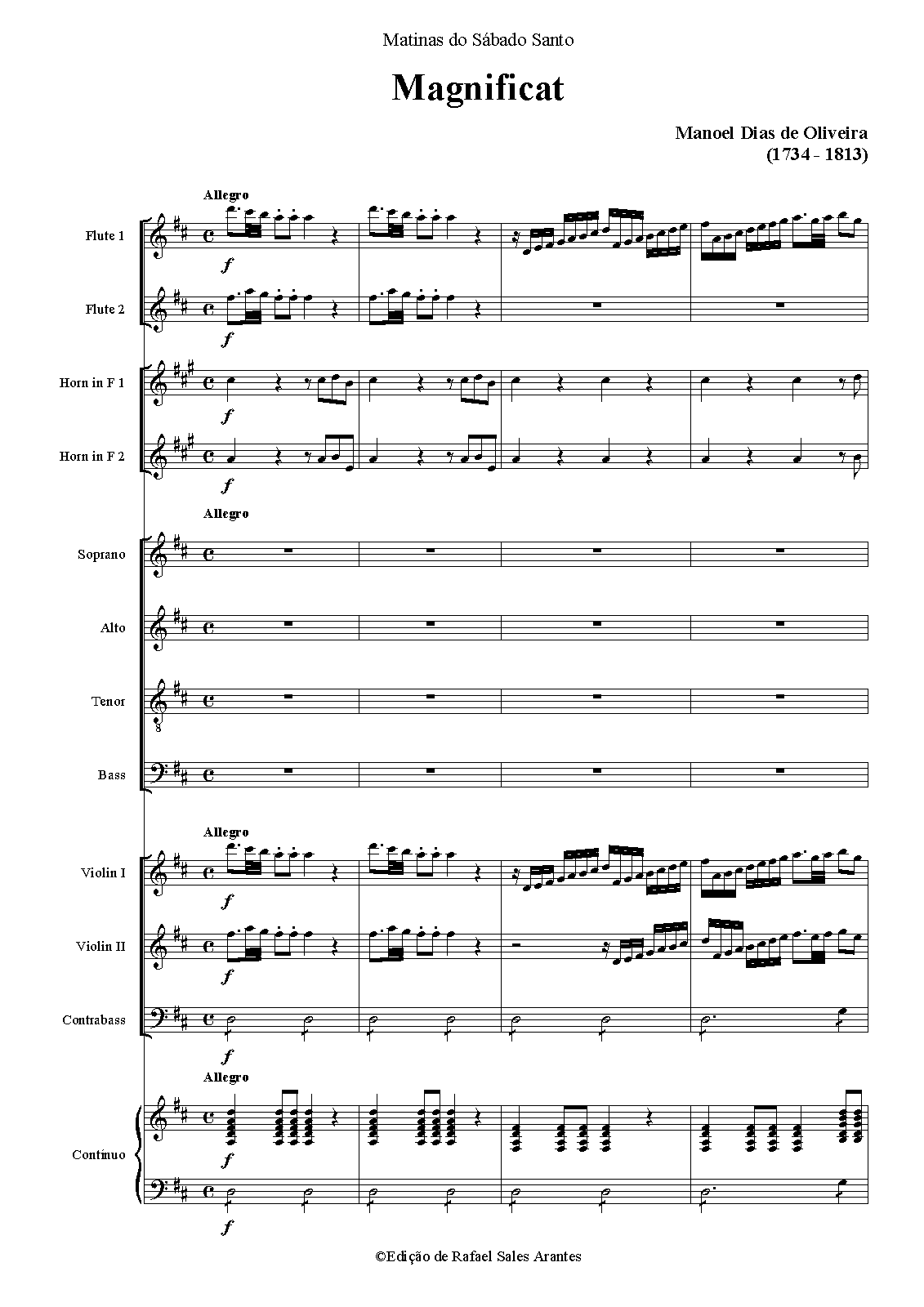 | Instrumentation | Coro (SATB), 2 Flutes, 2 Horns, Strings (no Viola) and Continuo |