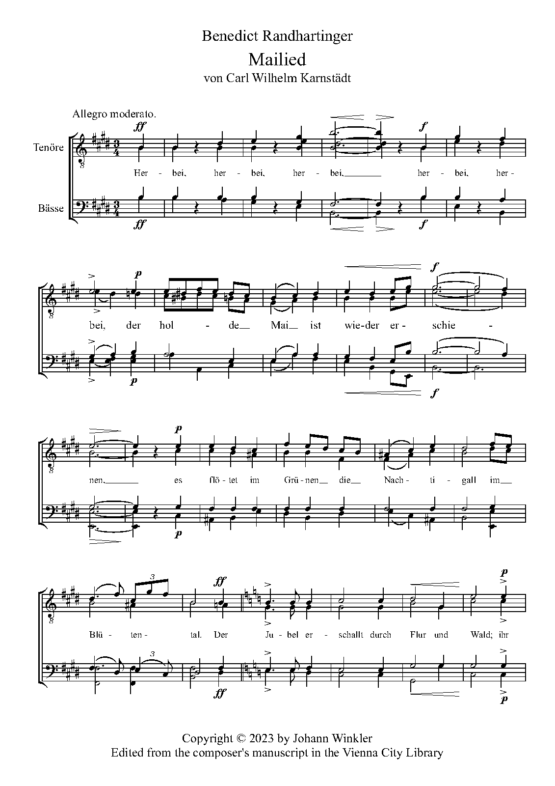 | Genre Categories | Lieder; Songs; For male chorus; |