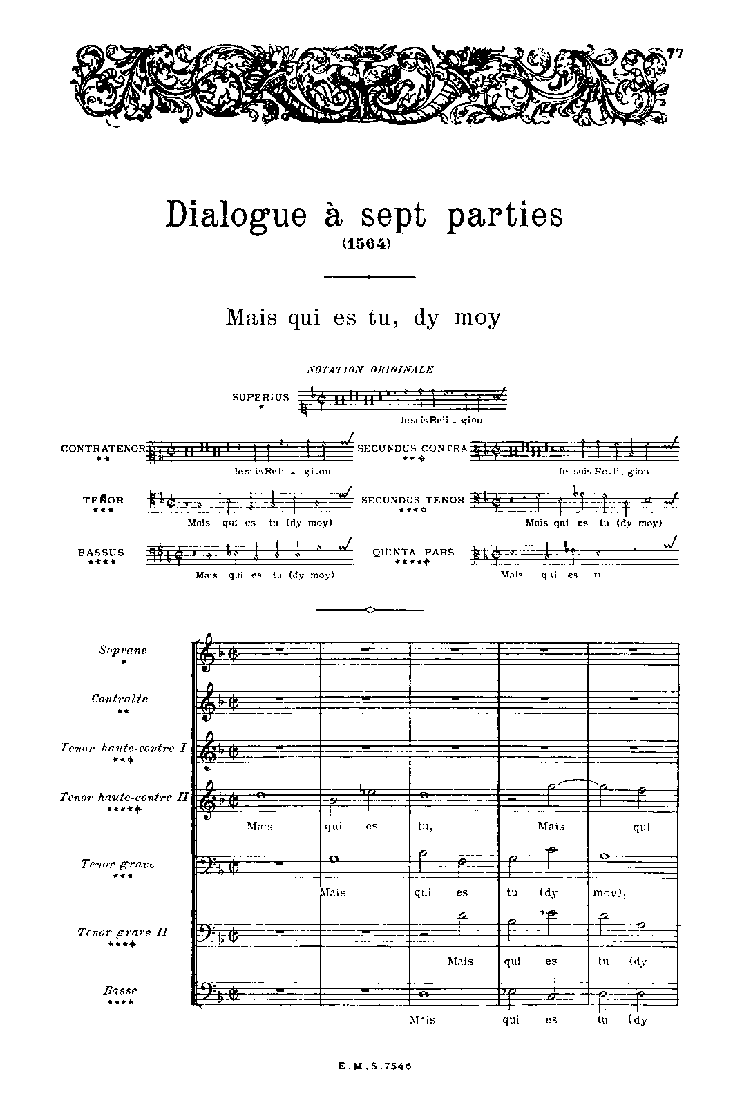 | First Publication | 1564 in 10 Pseaumes en forme de motets |