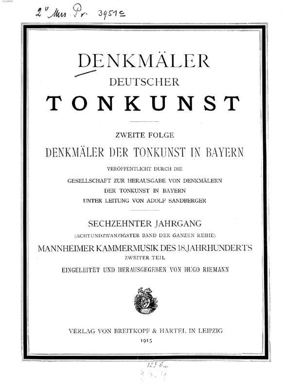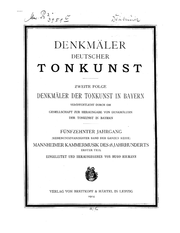 Leipzig: Breitkopf und Härtel, 1914. Plate D.d.T.i.B. XV.