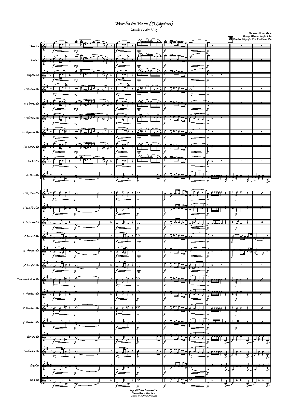 ⇒ 14 more: Clarinet 1 (B♭) • Clarinet 2 (B♭) • Alto Saxophone (E♭) • Tenor Saxophone (B♭) • Horn 1 (E♭) • Horn 2 (E♭) • Trumpet 1 (B♭) • Trumpet 2 (B♭) • Trombone de Canto (treble clef) • Trombone 1 (treble clef) • Trombone 2 (treble clef) • Euphonium (B♭, treble clef) • Tuba (E♭, treble clef) • Tuba (B♭, treble clef)