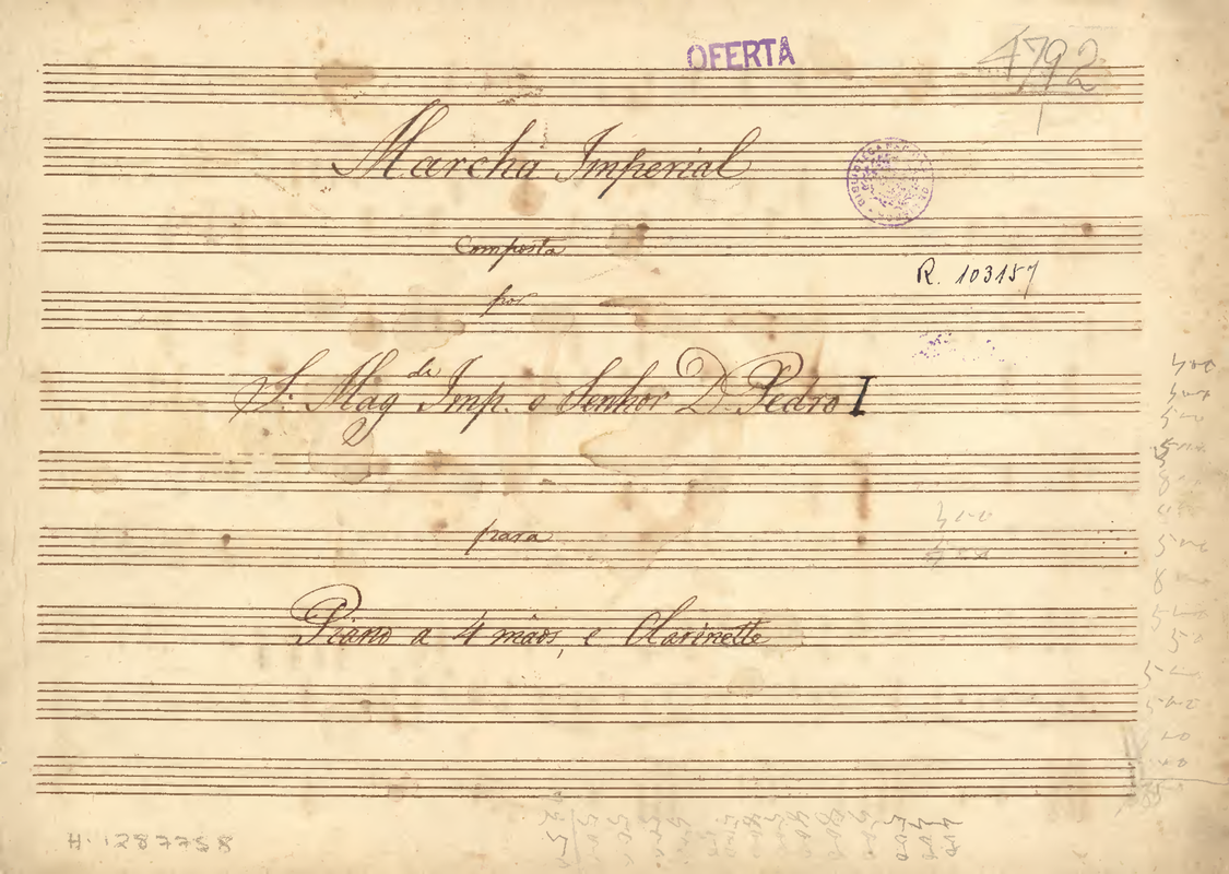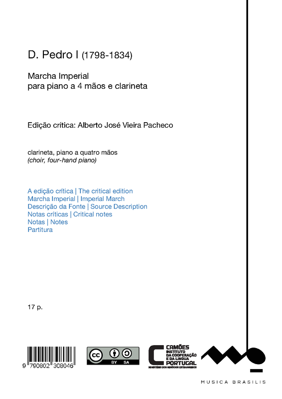| Extra Information | The critical note written by Alberto José Vieira Pacheco suggests this work was originally written for wind band and later arranged for piano 4-hands and clarinet by the composer, perhaps for family occasions (Pedro I was a clarinetist and his wife and daughters played the piano). |