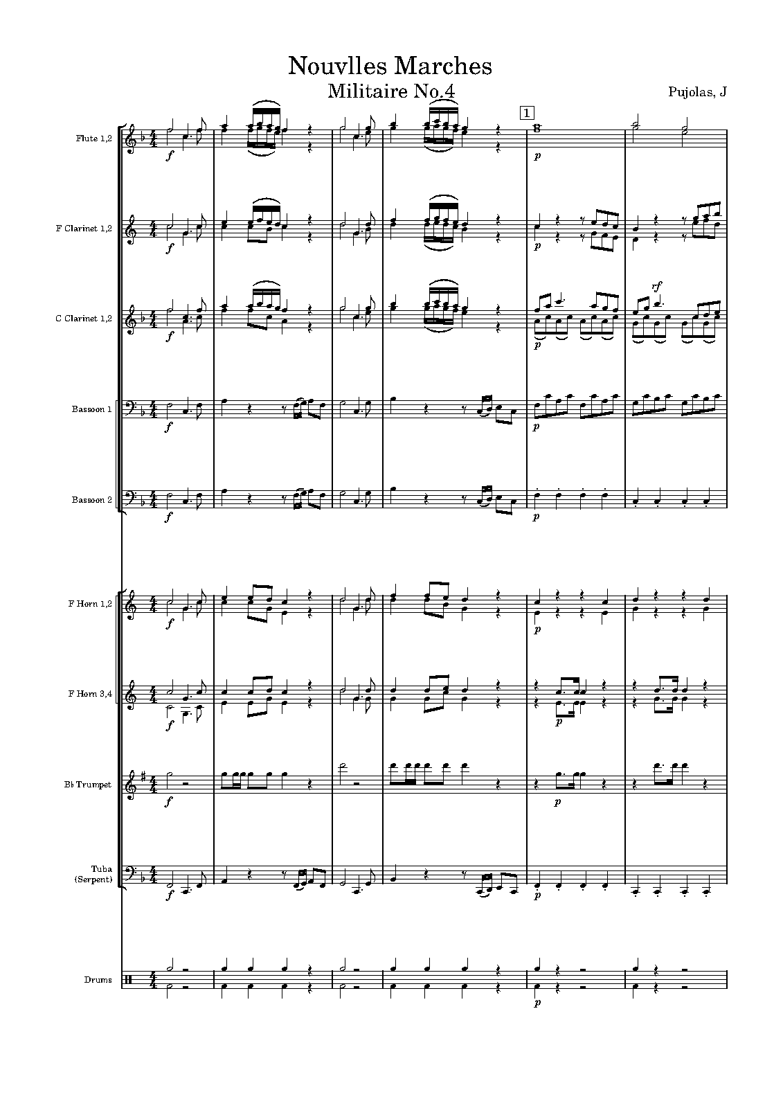 | Instrumentation | wind band (2 fifes/piccolos, 2 clarinets in C, 2 clarinets in F, 2 bassoons, 4 horns, trumpet, serpent, bass drum, cymbals, tambourine)