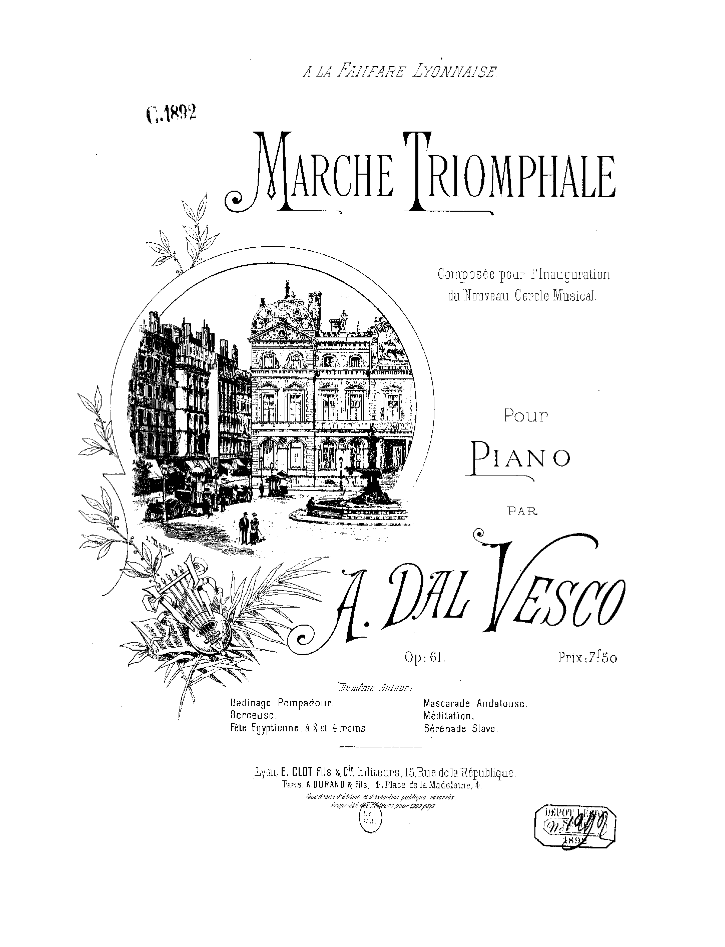 | Work Title | Marche triomphale, composée pour l'inauguration du Nouveau Cercle Musical |