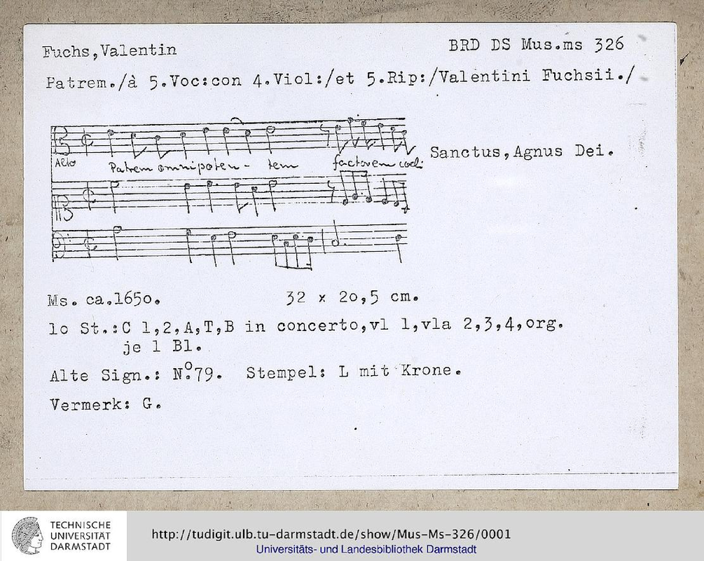 | Genre Categories | Masses; Religious works; For 5 voices, strings, continuo; |