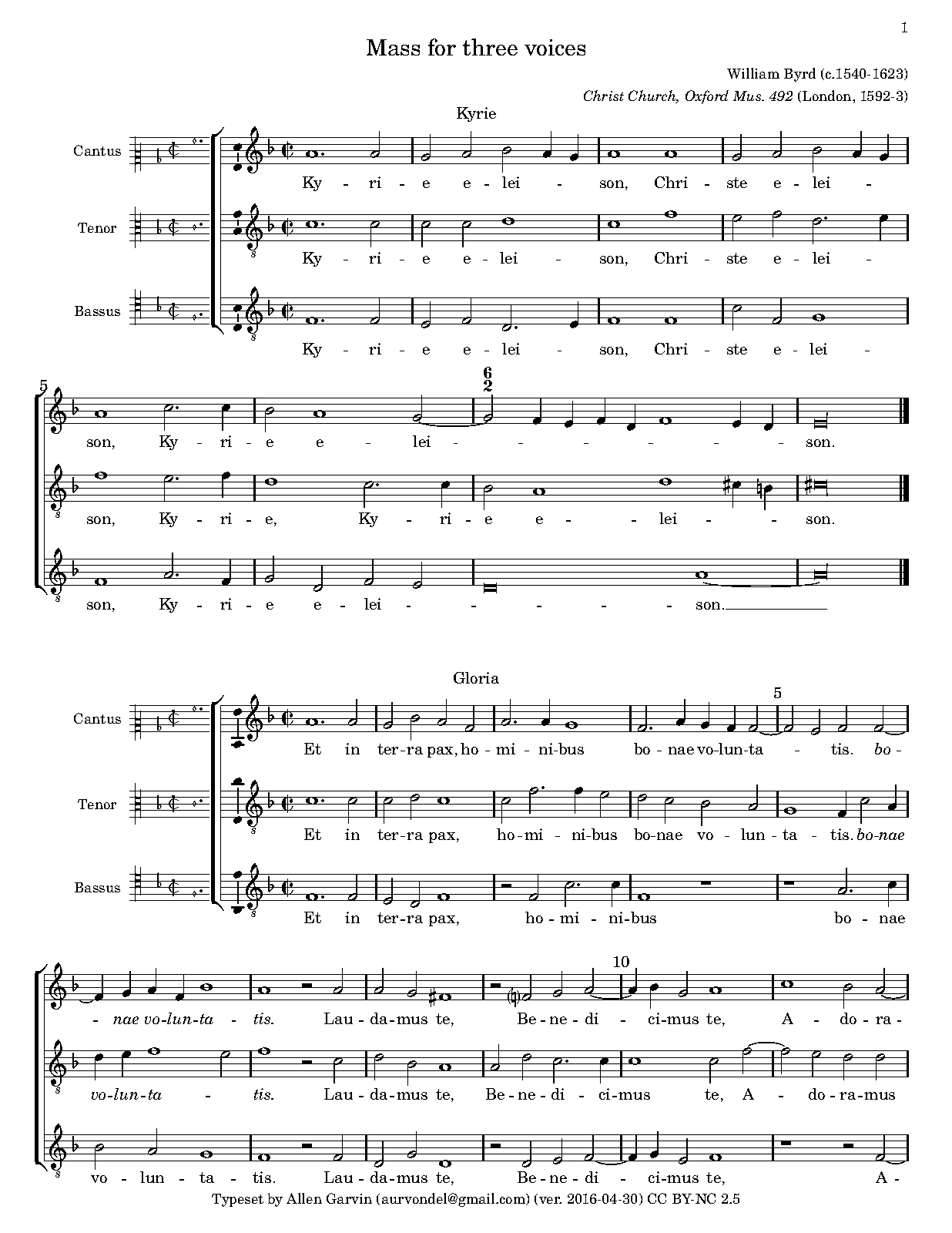 Misc. Notes Transposed down a tone for ATB, mensurstriche layout. Brief commentary at the end.