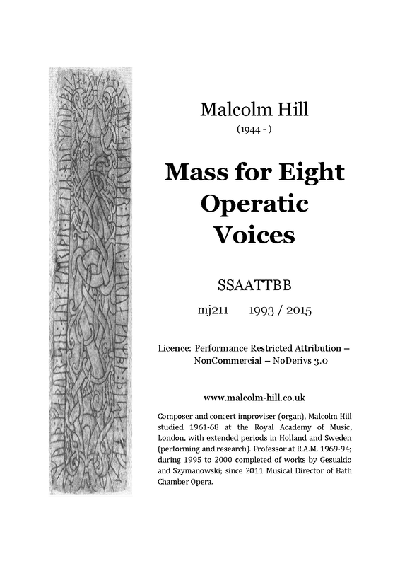 Sanctus and Agnus Dei were composed in 1993 and performed in Bath in 1994. The Mass could be performed by operatic chorus, but preferably just by eight operatic singers.