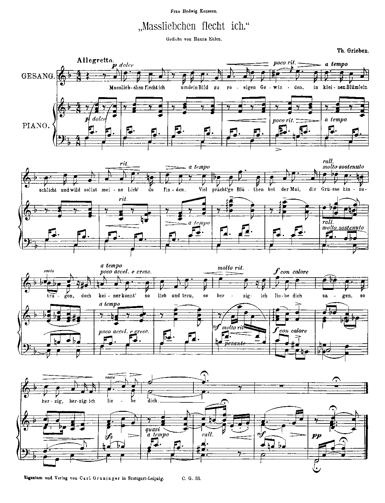 Neue Musik-Zeitung, 1892, No.3. Stuttgart/Leipzig: Carl Grüninger, 1892. Plate C.G. 93.