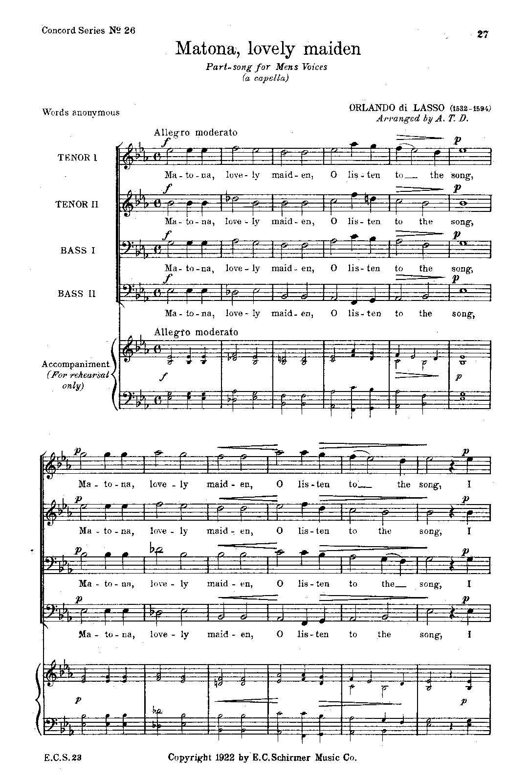 | Instrumentation | 4 voices or mixed chorus (SATB) |