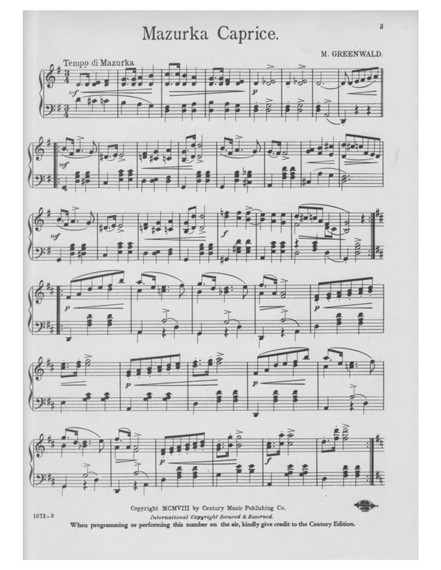 | First Publication | 1908 by New York: Century Music Publishing (Plate 1371) |