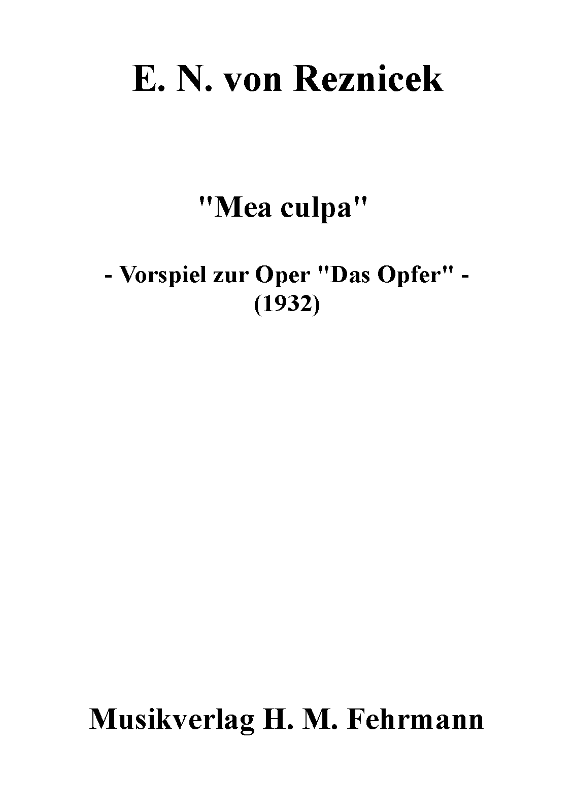 Likewise as with his opera "Holfernes" added a "Vorspiel (Prelude)" only after completing the the score of the opera. (Seee: Kol Nidry - Vorspiel zu Holofernes). Reznicek titeled the prelude to "Das Opfer" as "Mea culpa (My guilt)". Like the "Kol Nidrey" it is suitable for separate performances too, using a string orchestra or a string quartett.