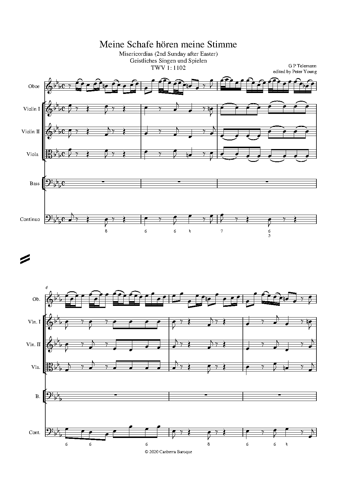 Voices: soprano, tenor, bass; mixed chorus (SATB) Orchestra: oboe, strings, continuo