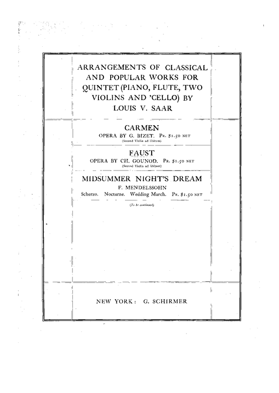 | Genre Categories | Potpourris; For flute, 2 violins, cello, piano; Scores featuring the flute; |