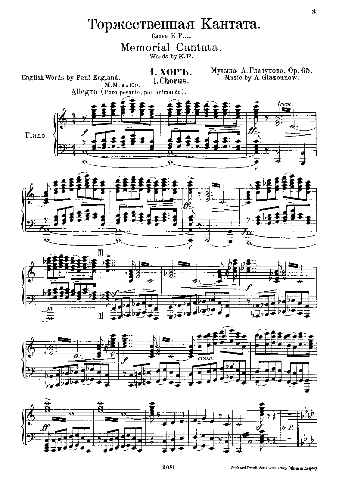 | Alternative. Title | Solemn cantata in commemoration of the 100th anniversary of A.S. Pushkin |