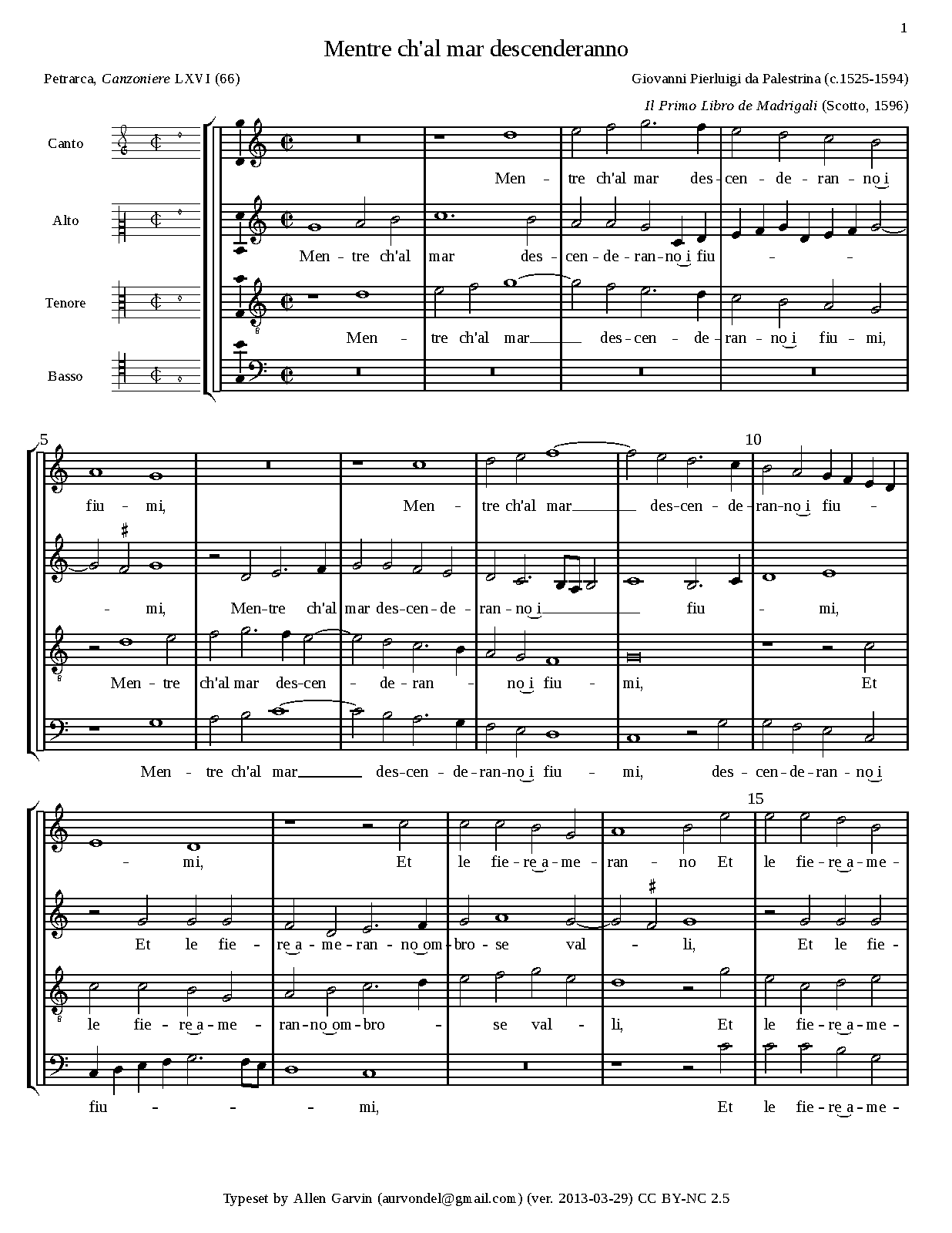 | First Publication | 1555 in Madrigali a quattro voci (No.13) |