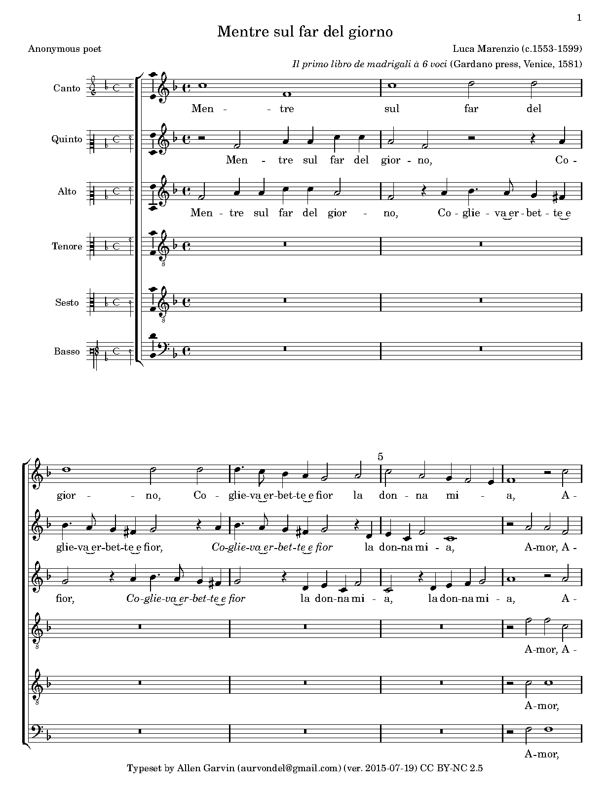 | First Publication | 1581 in Il primo libro de madrigali a 6 voci (no.16) |