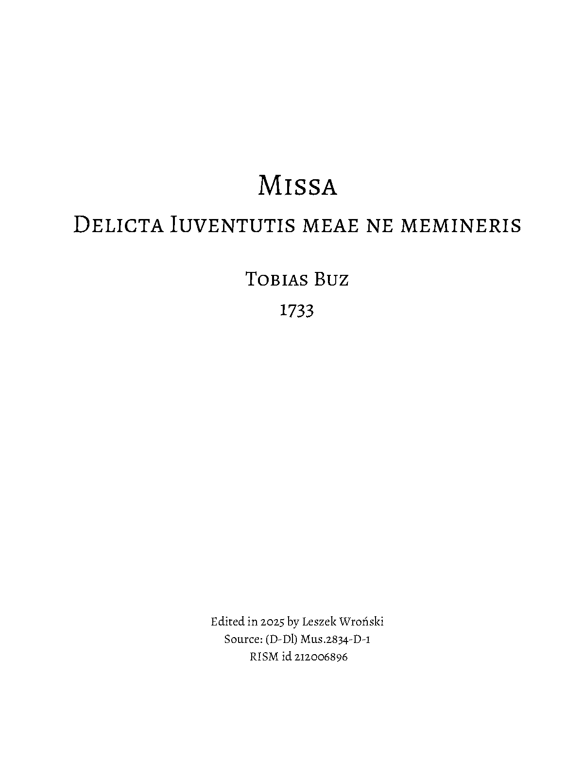 | Work Title | Messe Delicta iuventutis meae ne memineris |