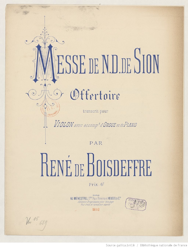 | Work Title | Messe de Notre Dame de Sion pour soli, chœurs, orgue et orchestre |