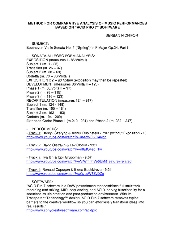 | Work Title | Method for Comparative Analysis of Music Performances |
