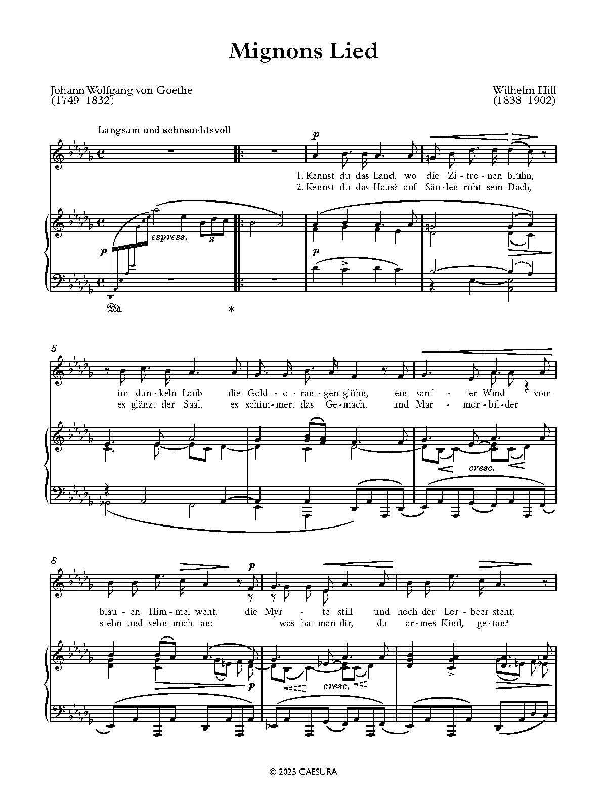 | Alternative. Title | Mignon's Lied: aus Goethe's Wilhelm Meister für eine Singstimme mit Klavierbegleitung |