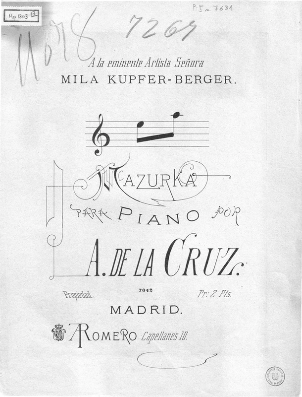 | Dedication | A la eminente artista Señora Mila Kupfer-Berger |
