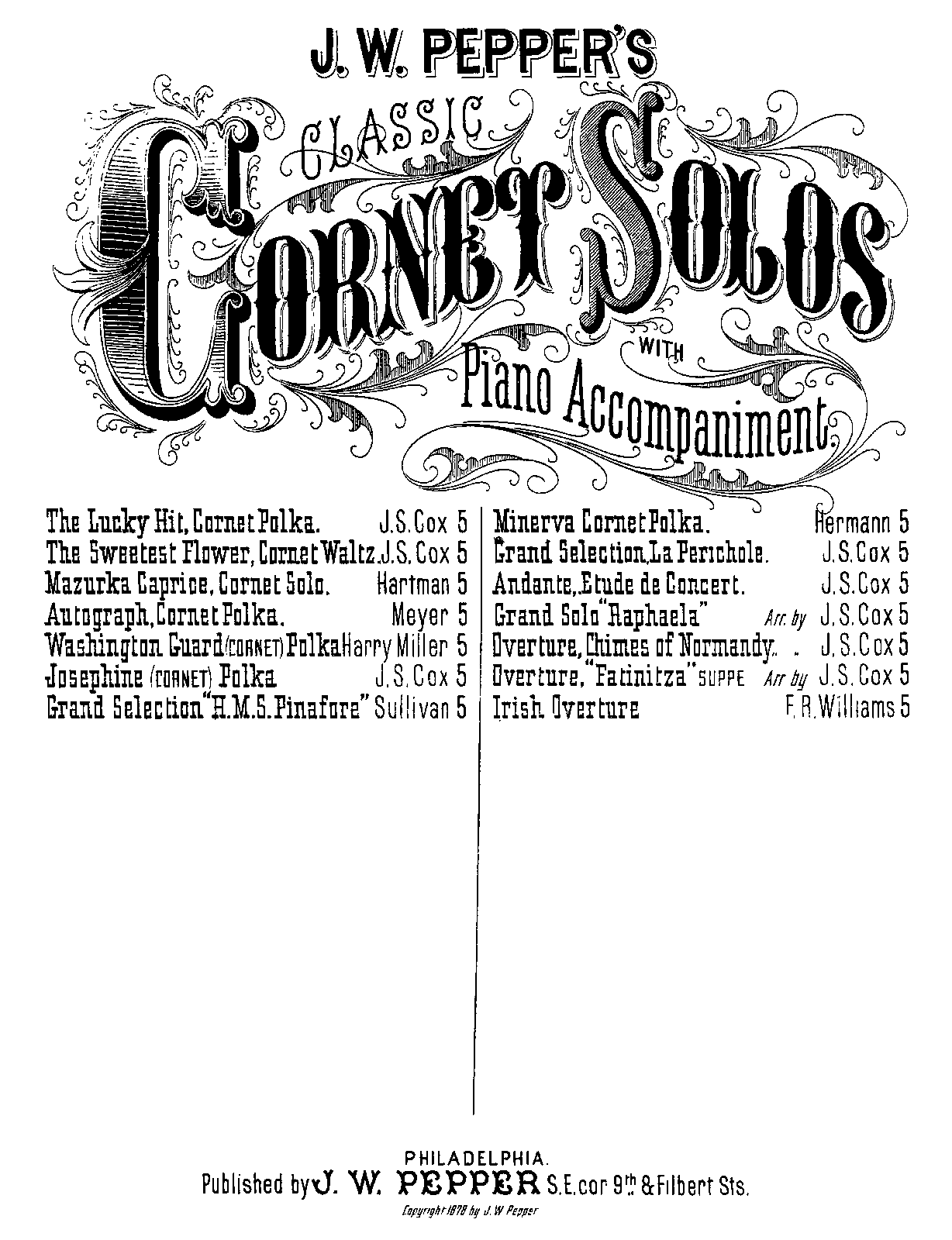 Later (about 1881) published for solo cornet and orchestra by J.W. Pepper as no.80 in their series Theatrical and Dance Journal.