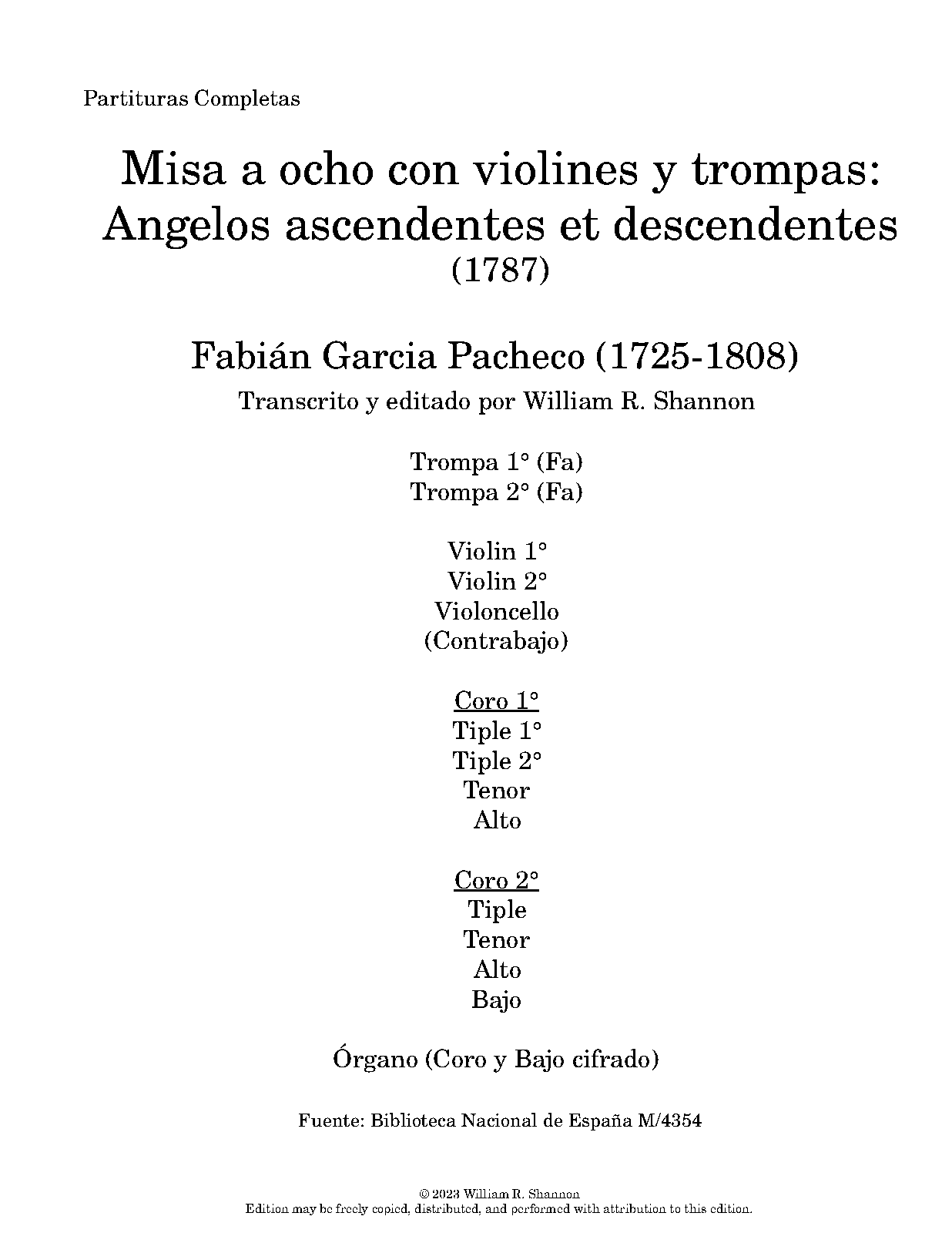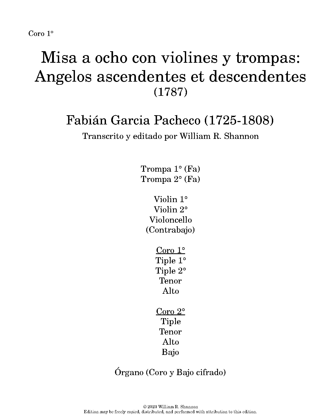 | Work Title | Misa a ocho con violines y trompas: Angelos ascendentes et descendentes |